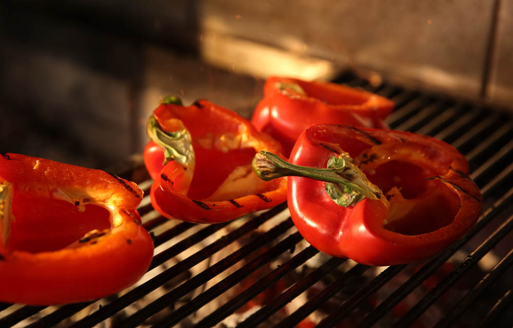 Die Paprika in grobe Stücke schneiden, mit Olivenöl bestreichen und grillen, bis sie weich sind und schöne Grillstreifen aufweisen. Das verleiht eine schöne Süße!